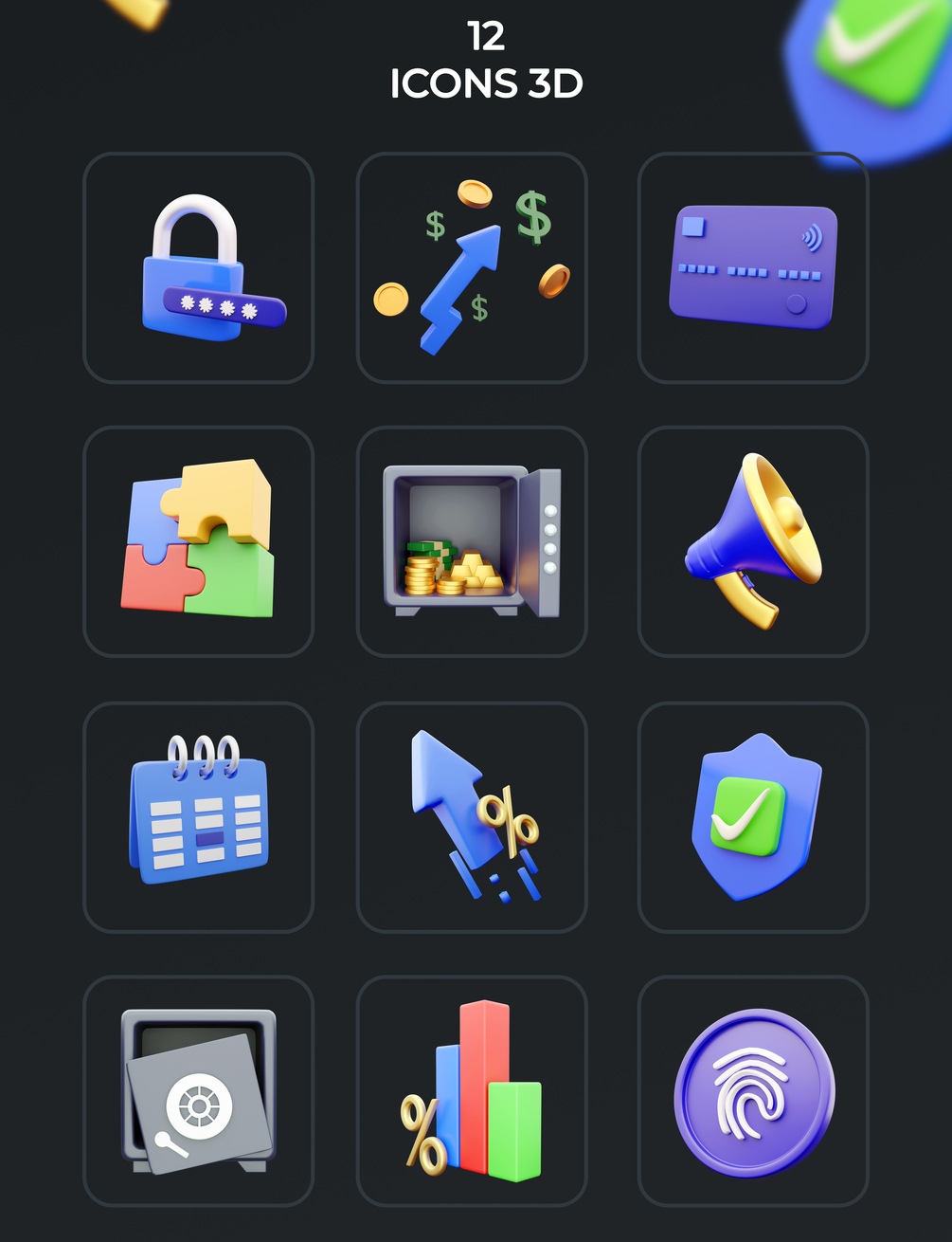 - 12 Unique 3D Icons PNG and PSD Files - High resolution - 2000×2000 px